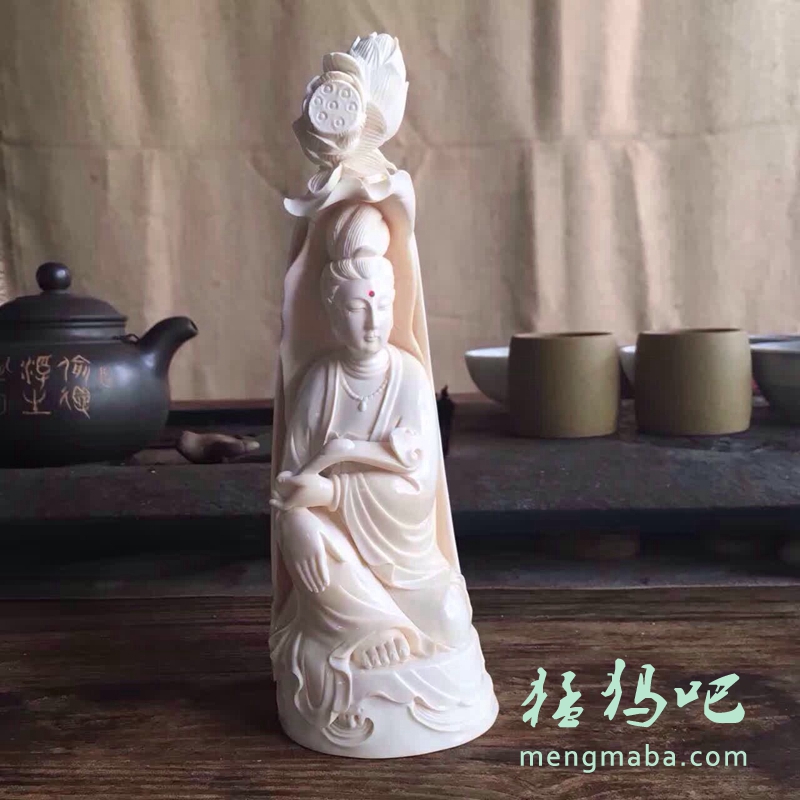 尹国荣大师精雕莲花观音,完美乳牙尖一气呵成,顶级猛犸白冰,开脸唯美,线条流畅生动,让人眼前一亮的作品 210*72*64mm 542g
